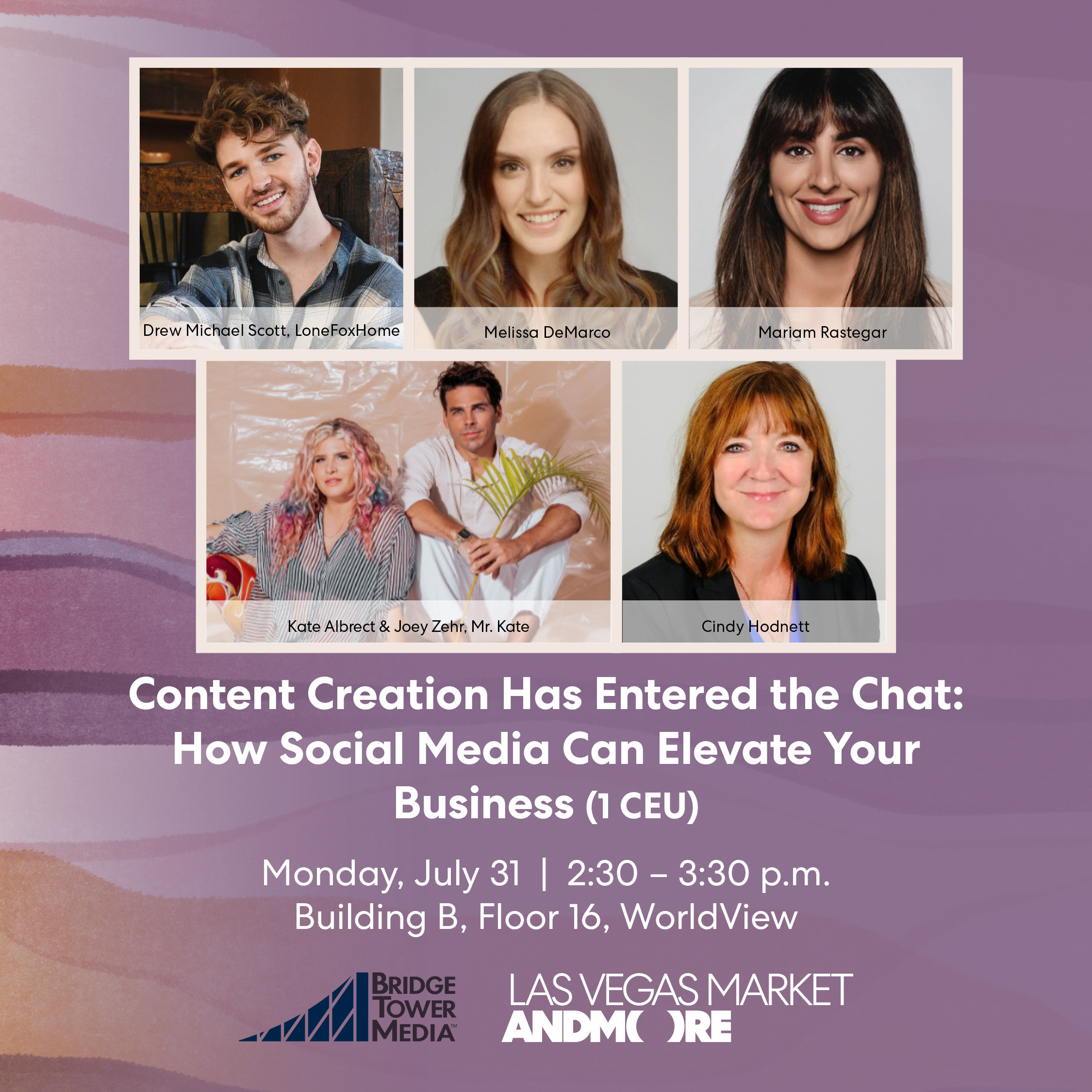The growth of social media and video content creation is ever present, especially among the interior design community. The challenge is just exactly how should designers harness these tools to elevate their business and grow their online presence? Not to mention, creating content that captivates their community, increases revenue streams, and creates more opportunities to work with brands and established influencers. Las Vegas Market is addressing your burning social media questions this summer by bringing Drew Michael Scott of LoneFoxHome; Kate Albrect and Joey Zehr of Mr. Kate; Melissa DeMarco, Senior Talent Agent: Digital Media, Licensing, and Branding Division at A3 Artists Agency; and Mariam Rastegar - Senior Talent Manager of Digital Creation at Range Media Partners, to address how you can prioritize and leverage the right social media platforms to establish your content brand, and the lasting impact of design influencers within home. Moderating the discussion will be Cindy Hodnett, Executive Editor, Brand Development for Bridgetower Media - Furniture Today|Home Accents Today|Designers Today| and Gifts and Decorative Accessories. A time for Q&A will follow the discussion.